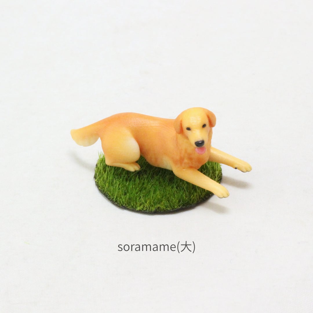 みんなを幸せにする「黄金の笑顔」と、包容力たっぷりな佇まい。 大型犬ならではのおおらかな魅力を手のひらサイズで表現しています。