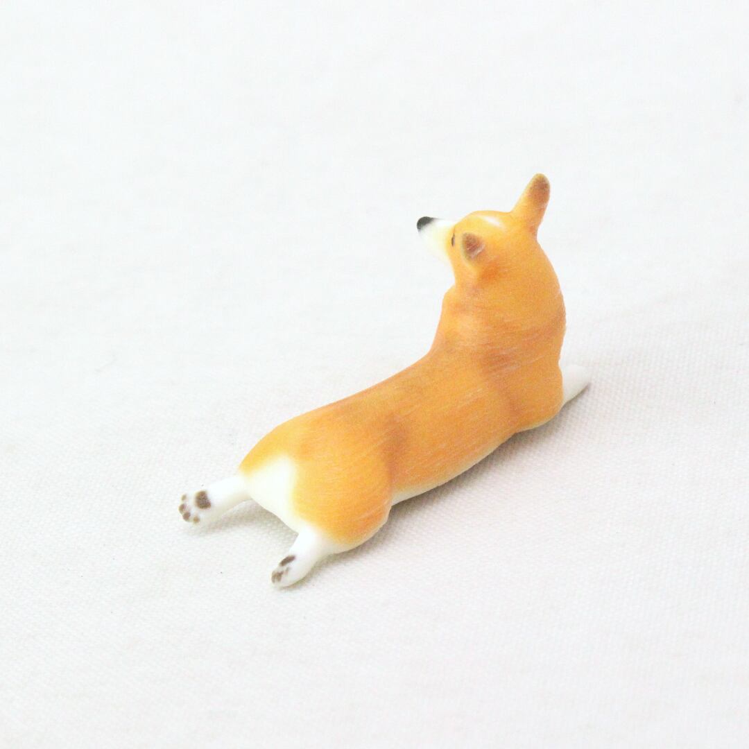 後ろ足をペタンと投げ出してくつろぐコーギー独特の「コギ落ち」姿を表現しました。