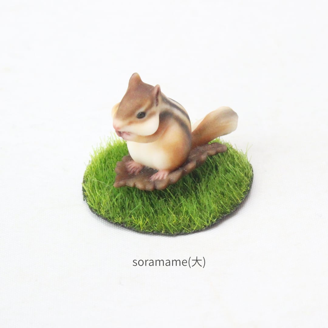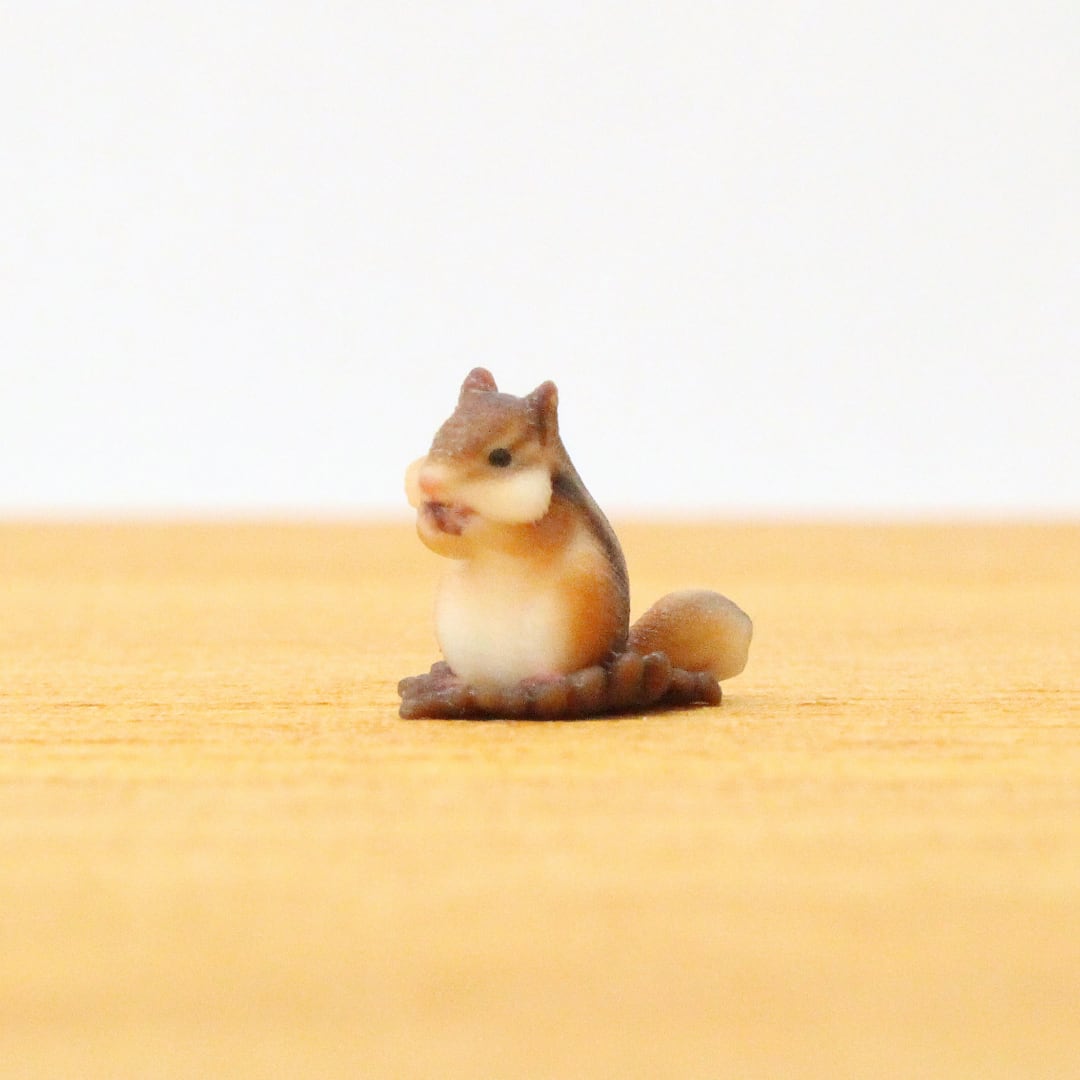 森の小さな働き者、シマリスが冬支度のために大好物を夢中で頬に詰め込んでいる「一番可愛い瞬間」をカタチにしました。