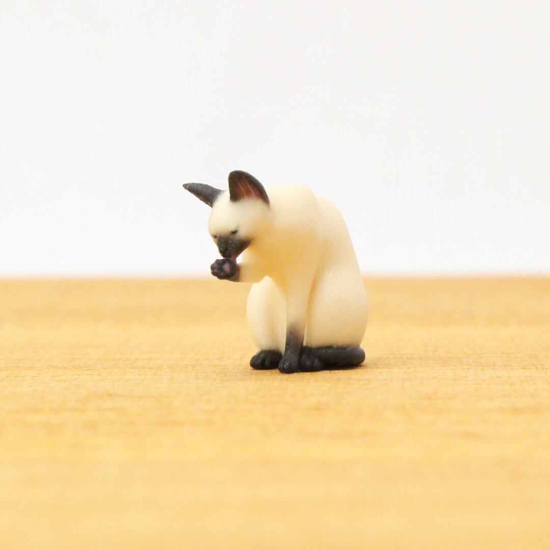 高貴な美しさを引き立てる、猫らしい毛づくろいの一瞬を形にしました。