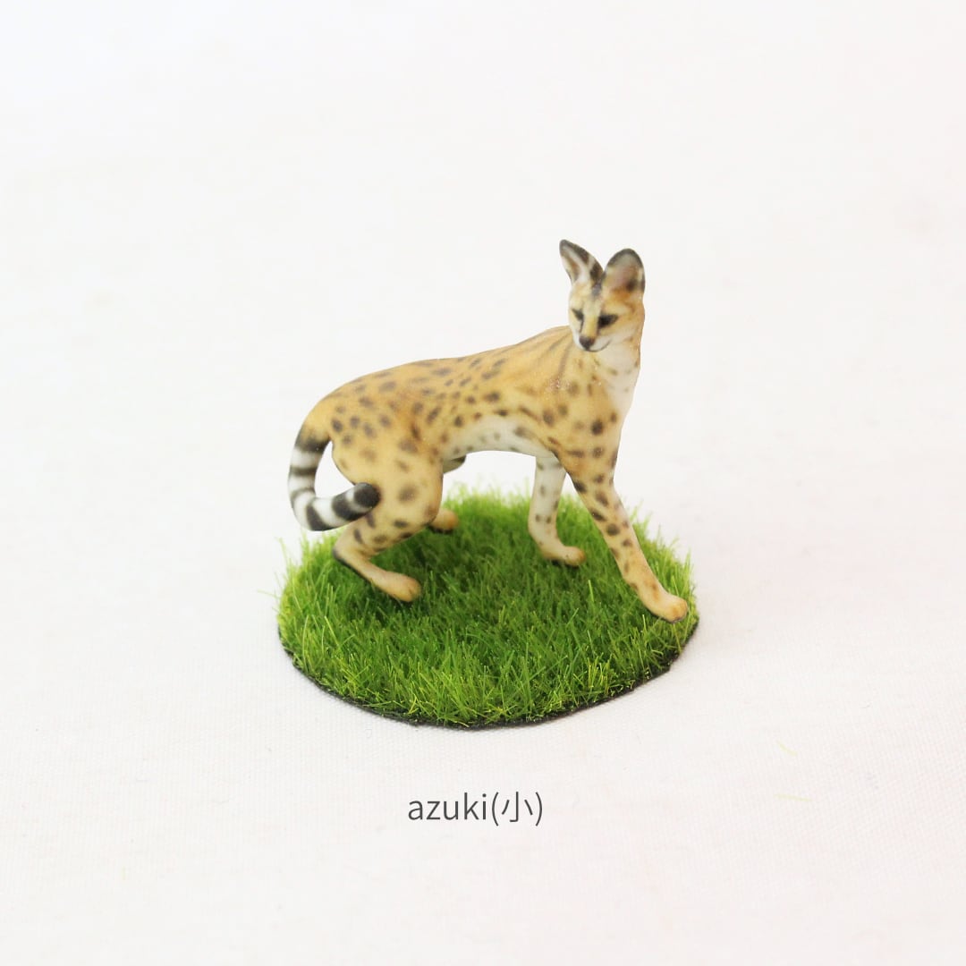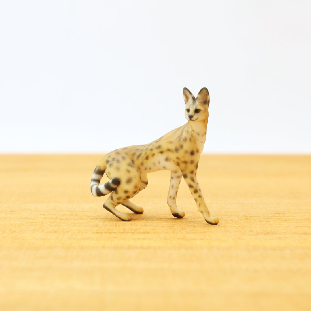 サーバル特有のスレンダーなボディラインや、美しいスポット模様を精巧に表現しました。