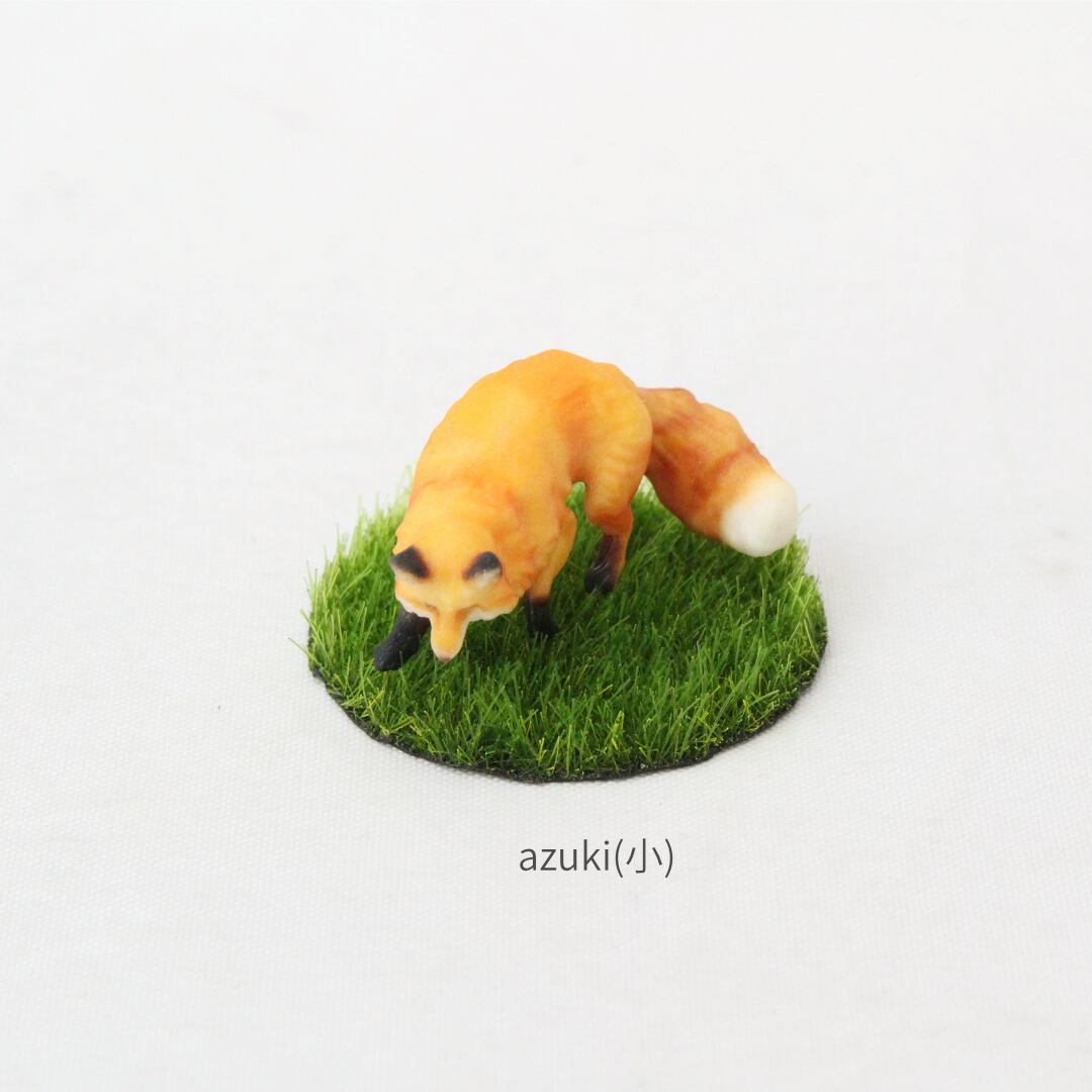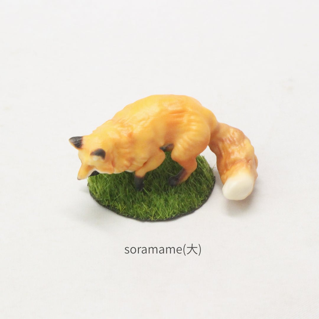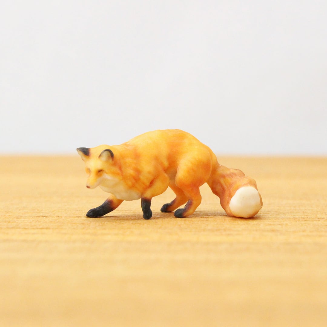 その鮮やかな黄金色の被毛と、ピンと立った耳、そして誰をも魅了するボリュームたっぷりの尻尾をミニチュアに再現しました。