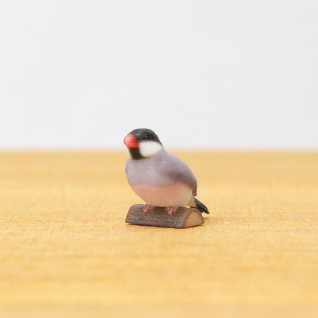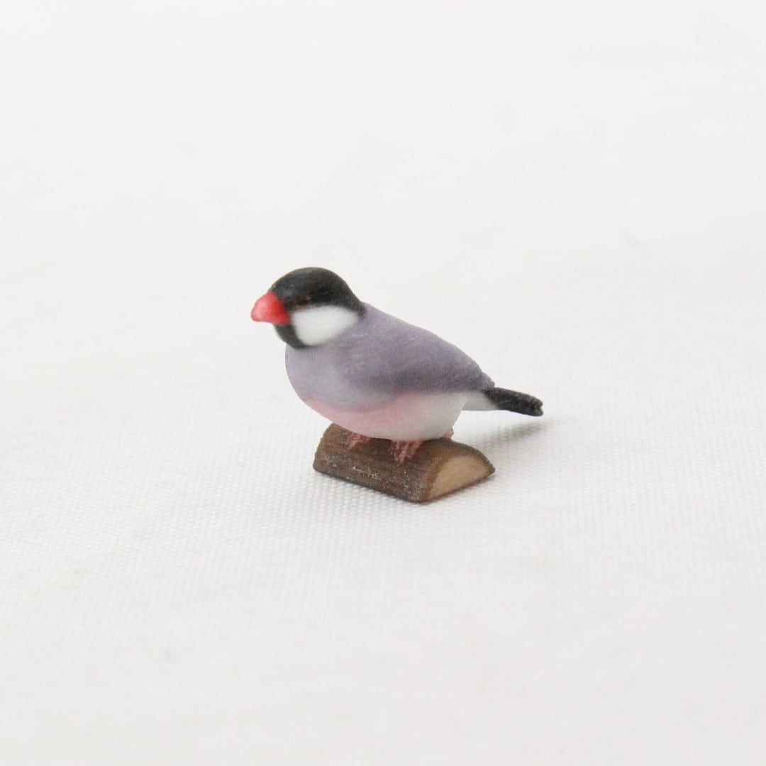 こちらは黒い頭と灰色の羽毛のノーマル文鳥。白文鳥もラインアップにございます。