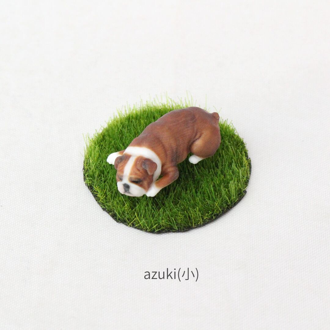 だるっとした彼らのイメージに合わせて、重厚感としわ感が際立つ、地面にふせたポーズにいたしました。