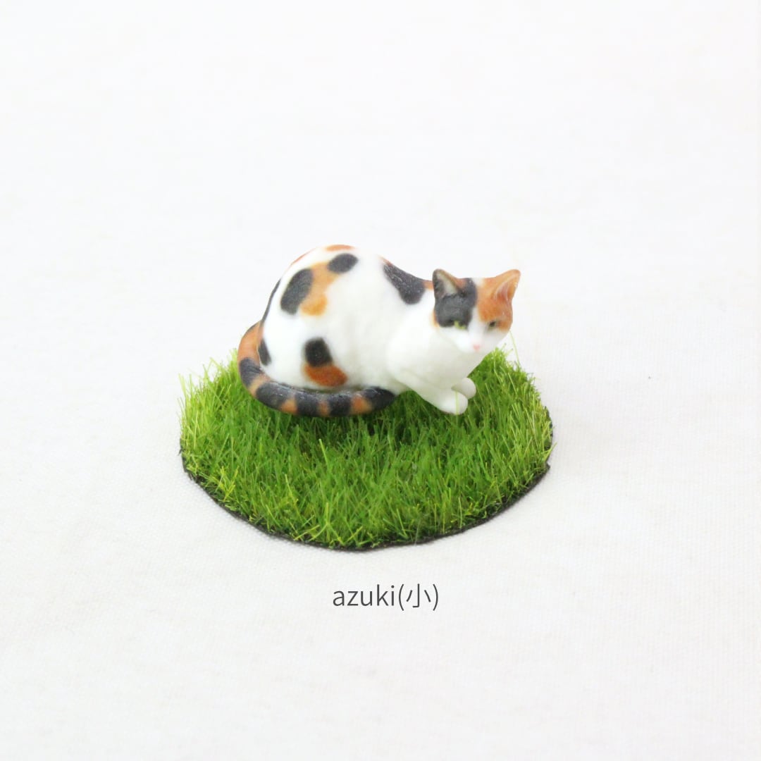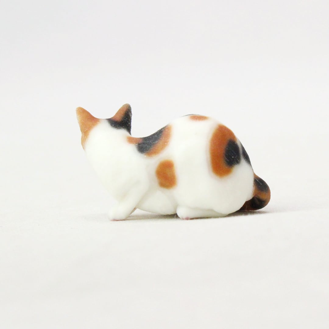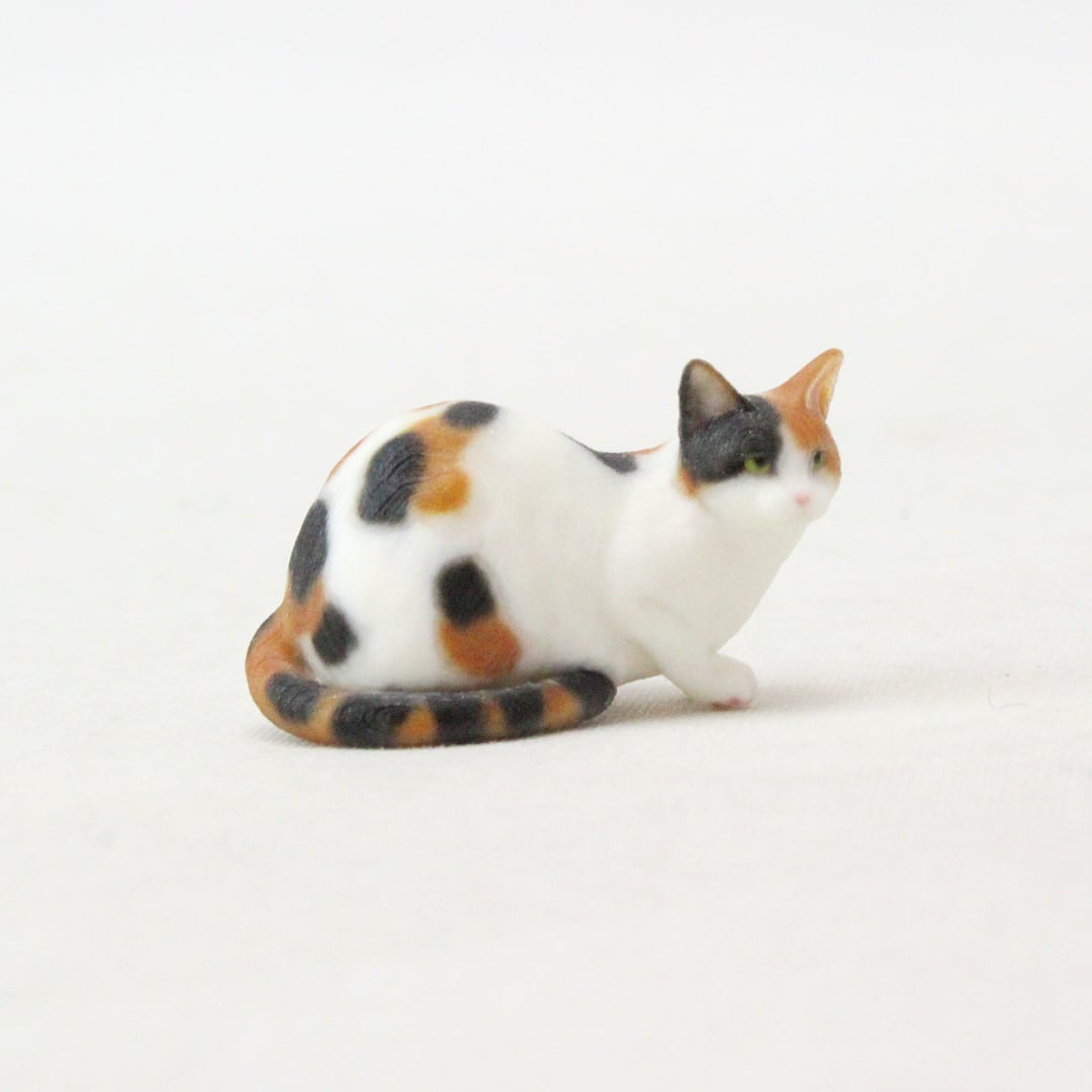 すらりと伸びた優雅な尻尾をまとって、じっと見つめる姿をミニチュアに再現しました。