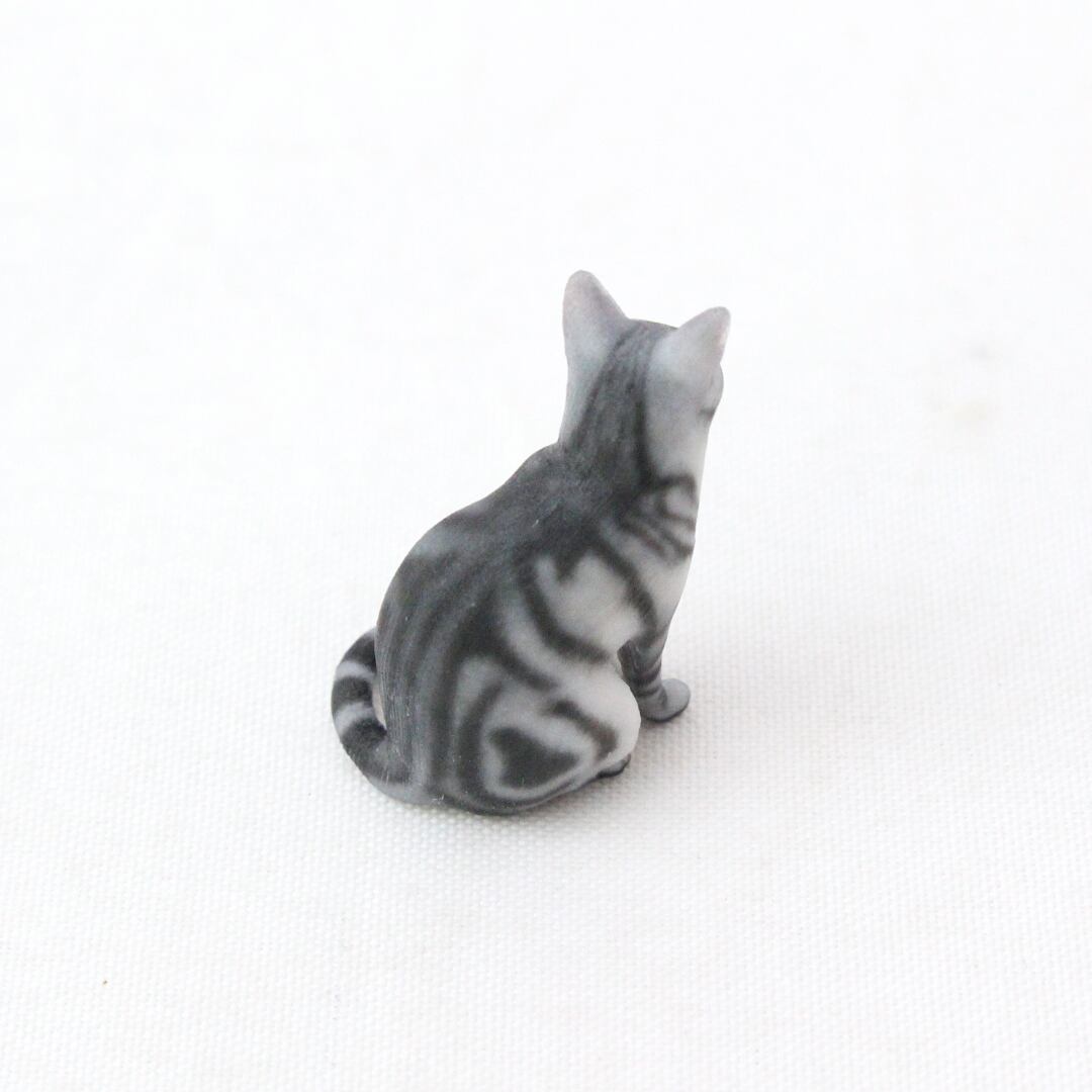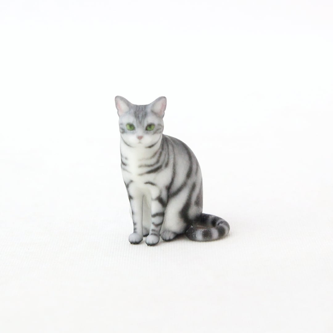 凛としたお座り姿で、じっとこちらを見つめるアメリカン・ショートヘア。