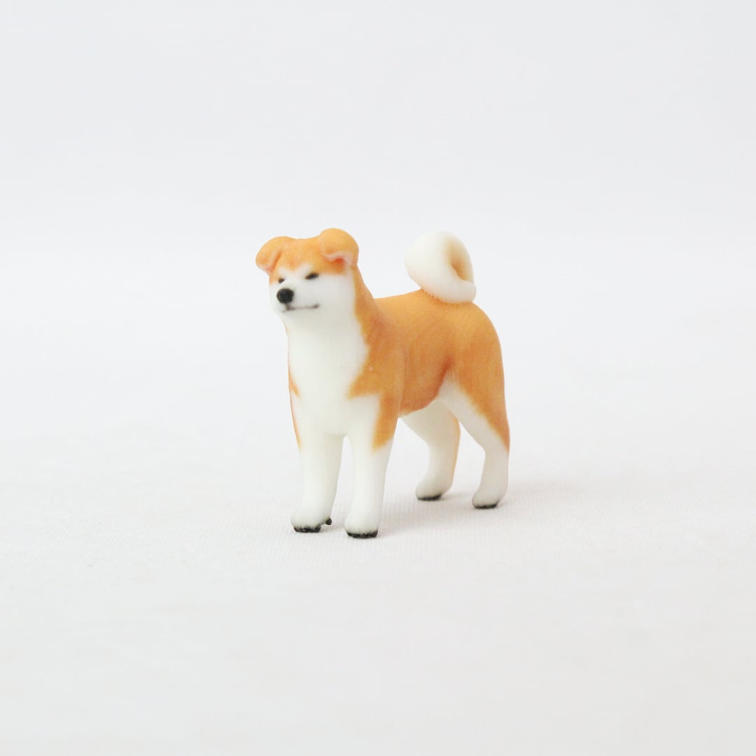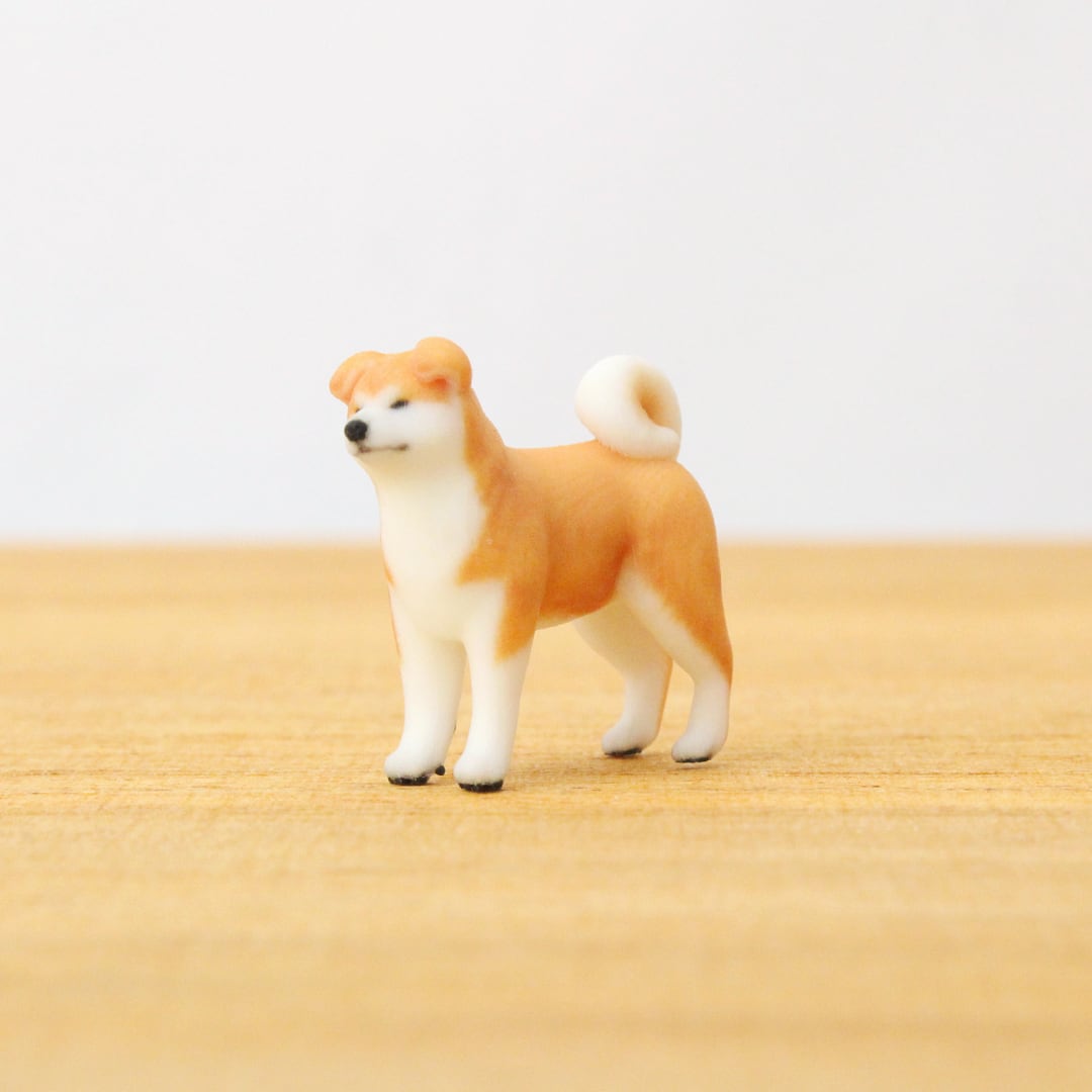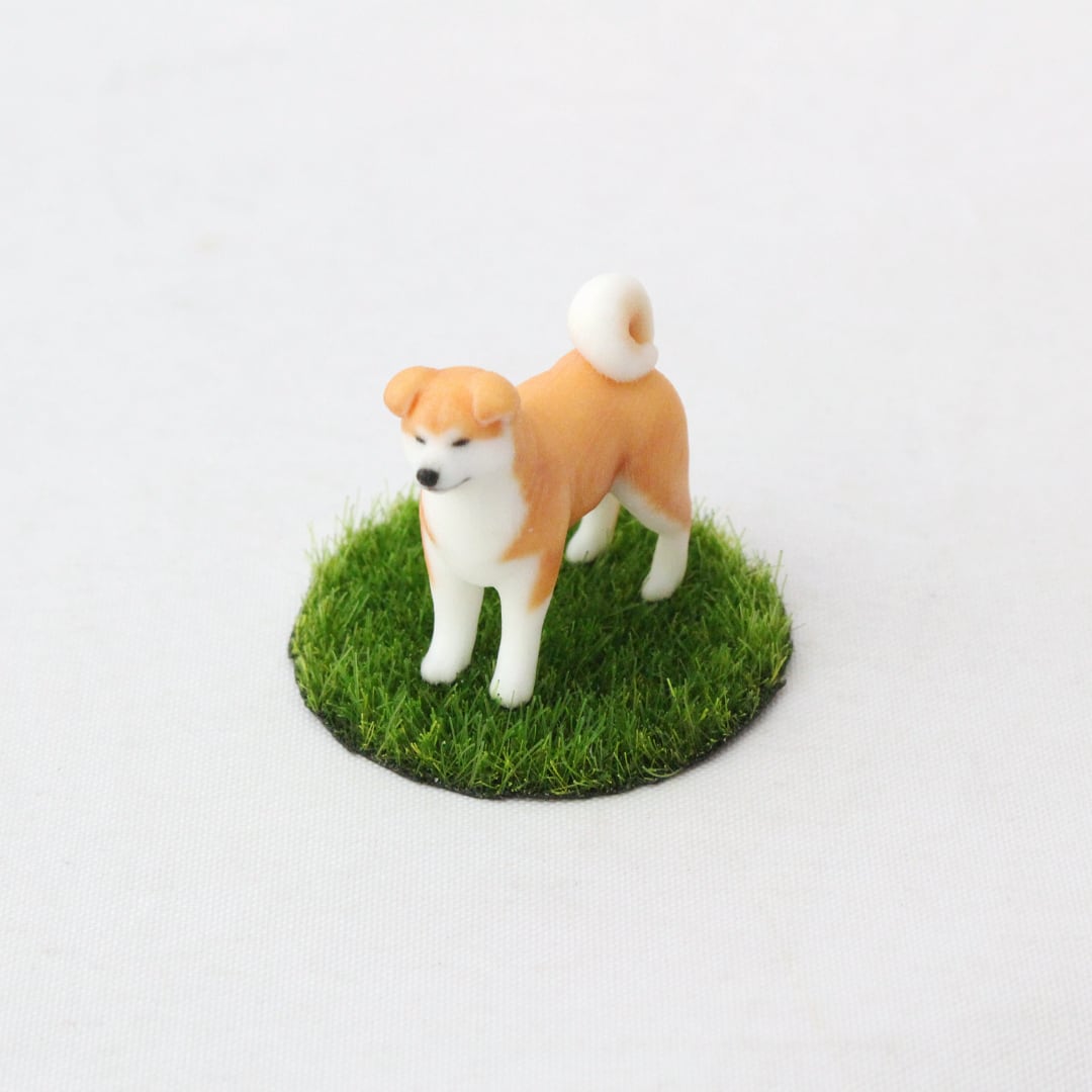 秋田犬の子犬だけが持つ、あどけなくも力強い愛らしさを指先サイズのミニチュアに再現しました。