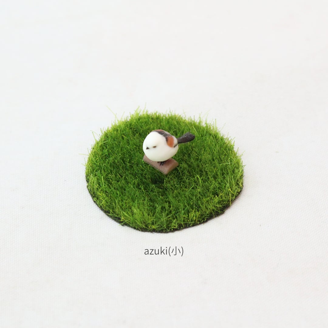 撮影用に設置した丸い芝生は、直径26.5mm(500円玉程度の大きさ)です。