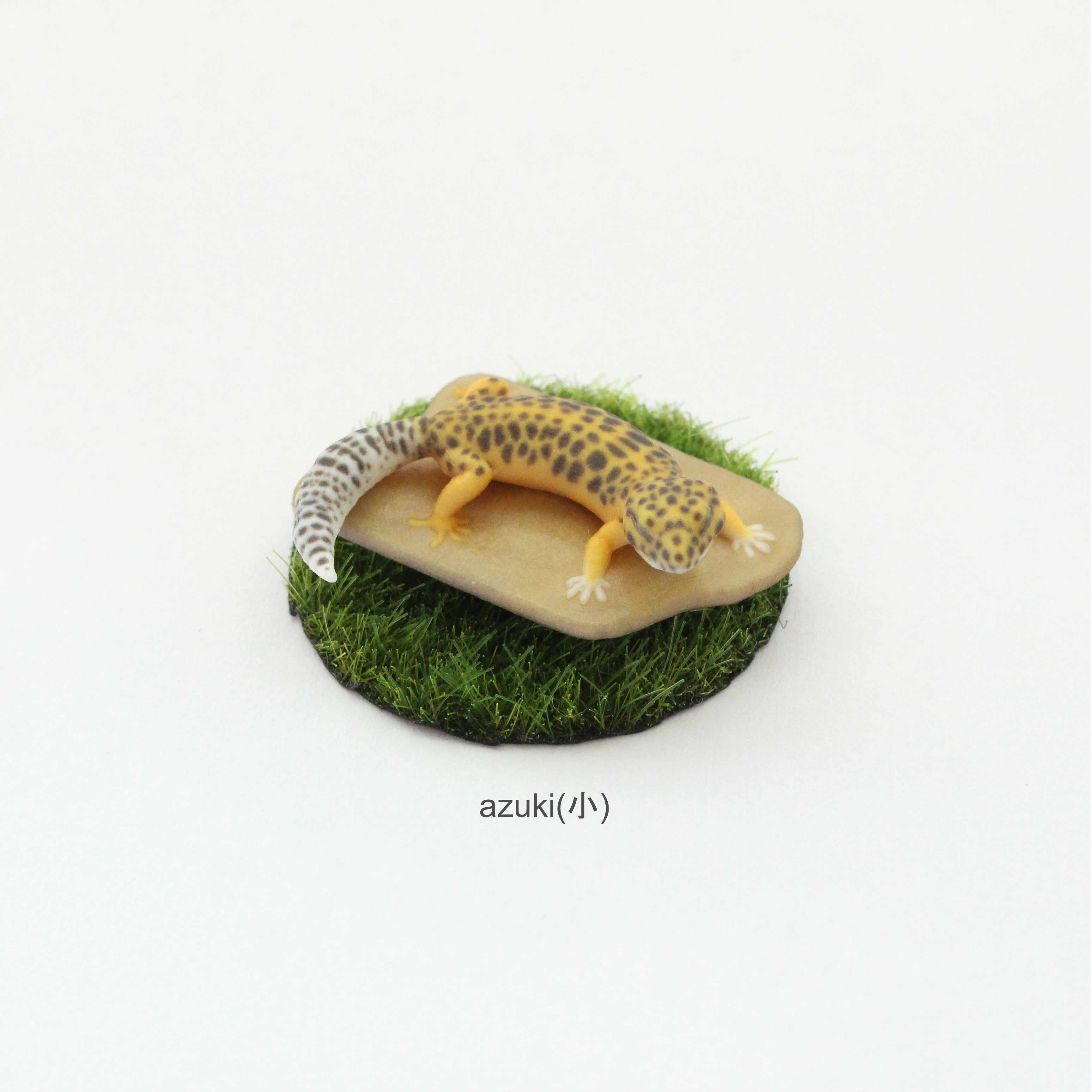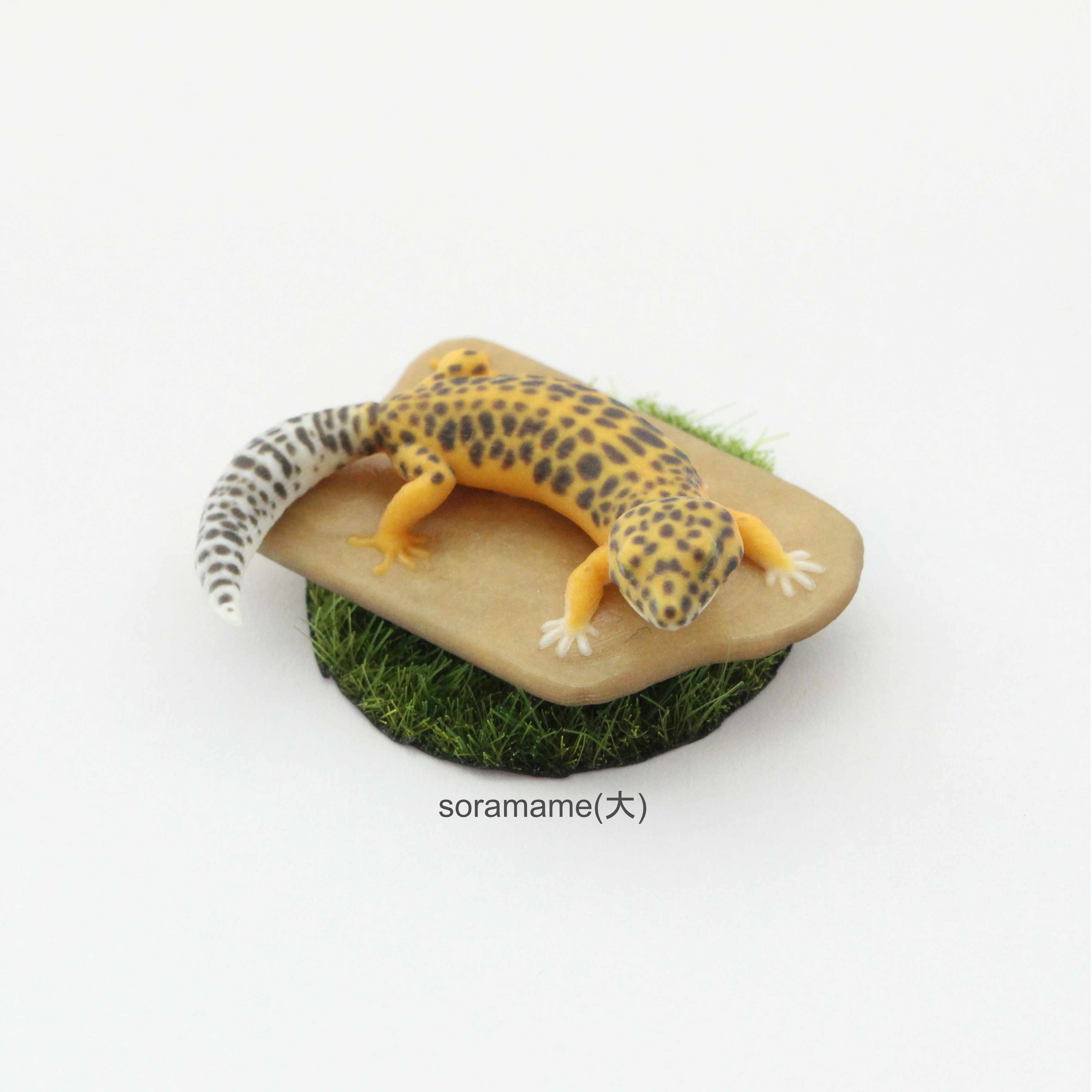 栄養を蓄えたモチモチとした尻尾の質感や、トカゲモドキ特有の指先のフォルムを小さなフィギュアに凝縮しました。
